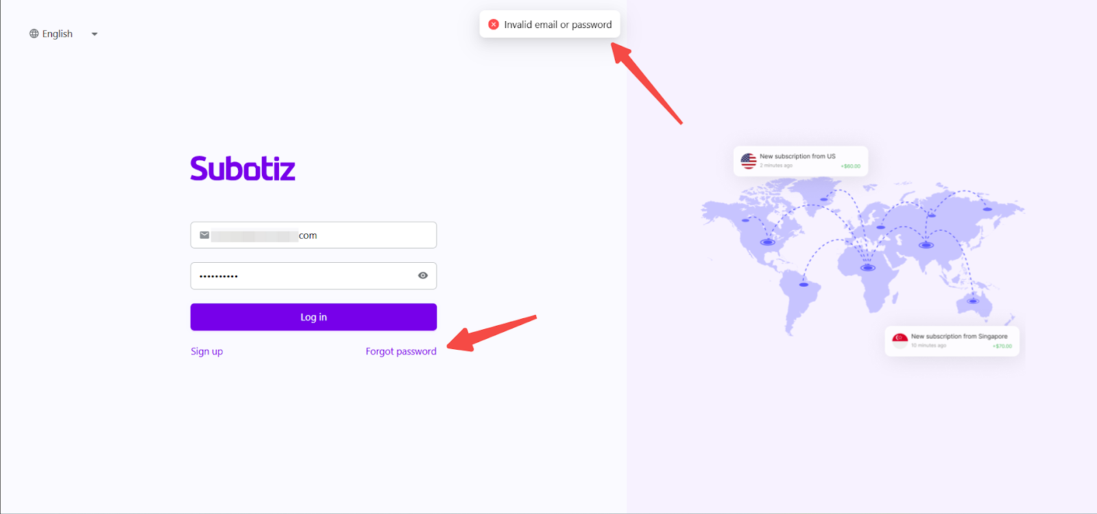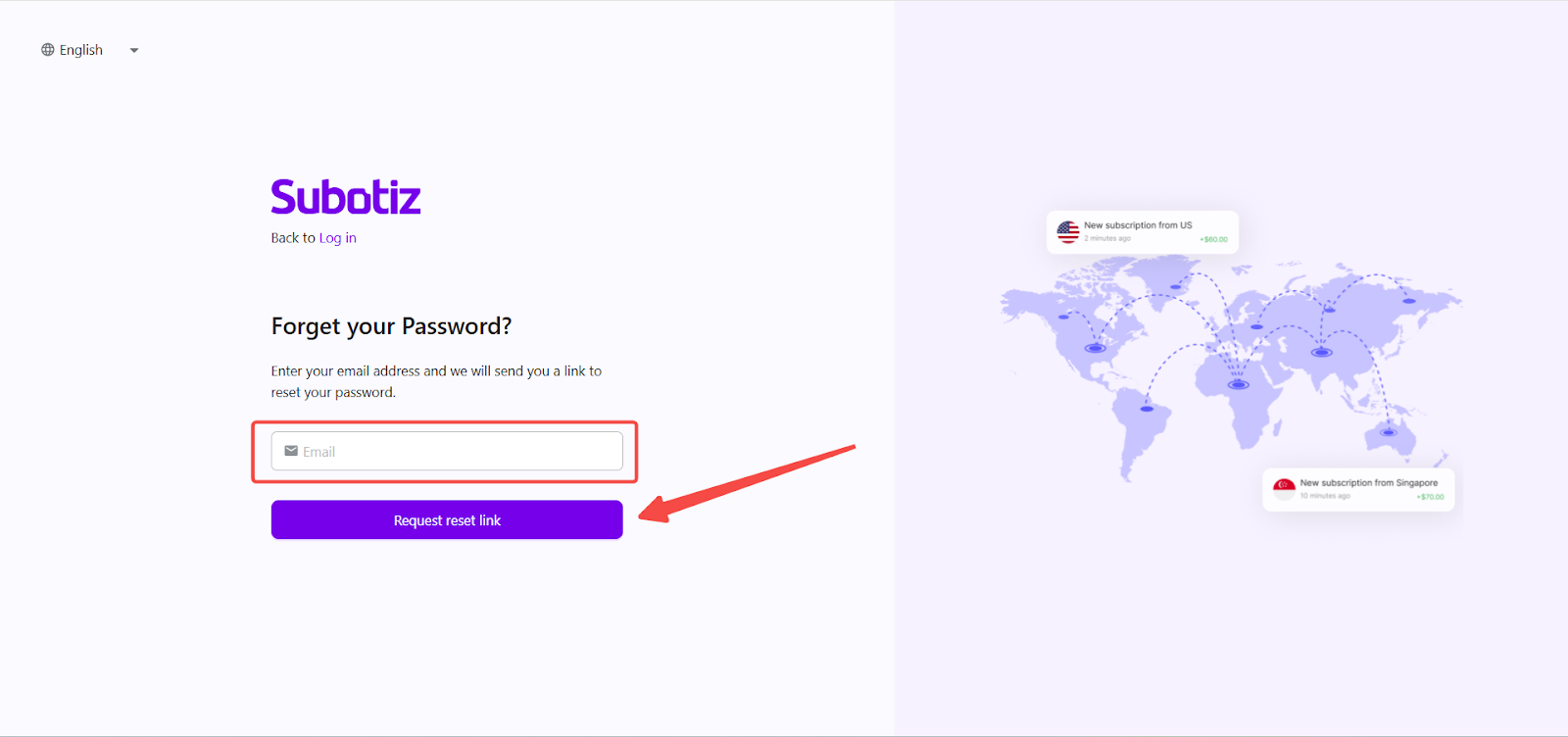 The login and password reset functions in Subotiz enable account owners and staff to securely access the admin. If a password is forgotten, users can request a reset link by email to quickly regain access. This ensures both convenience and account security.