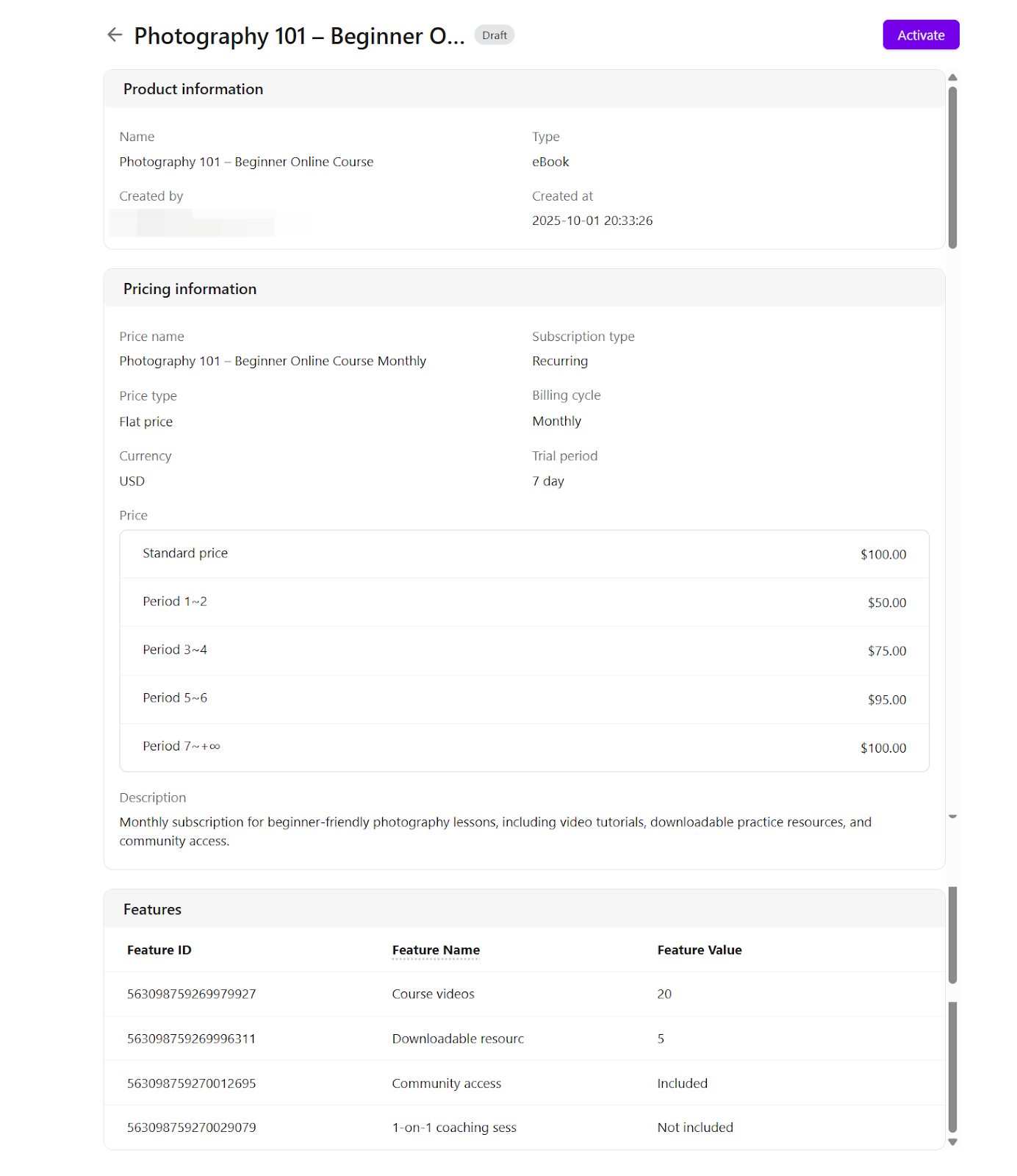 Review this dashboard regularly to clean up draft entries, retire outdated plans, and keep your active pricing aligned with your latest offerings. Centralized pricing management helps maintain catalog consistency and operational efficiency.