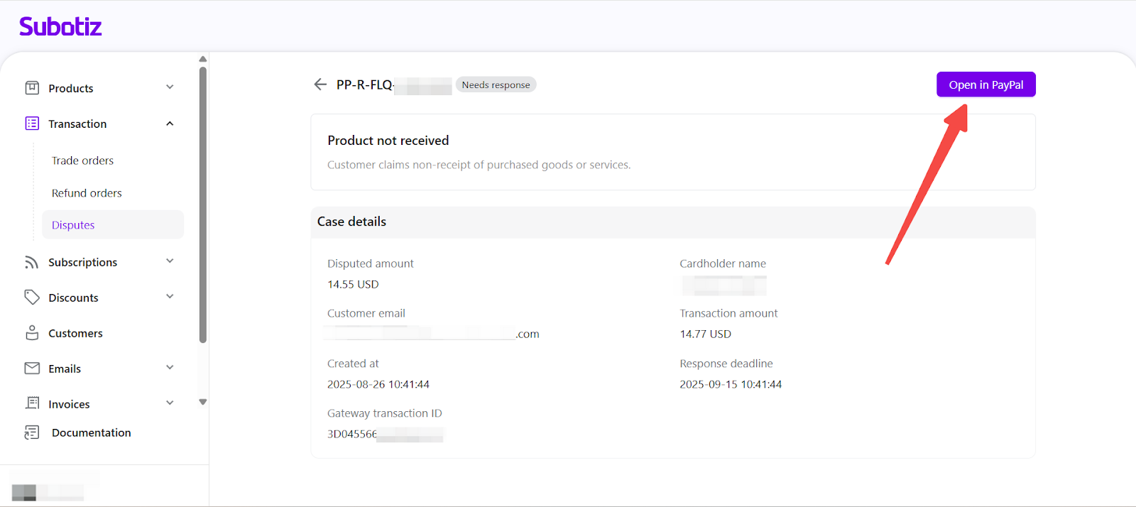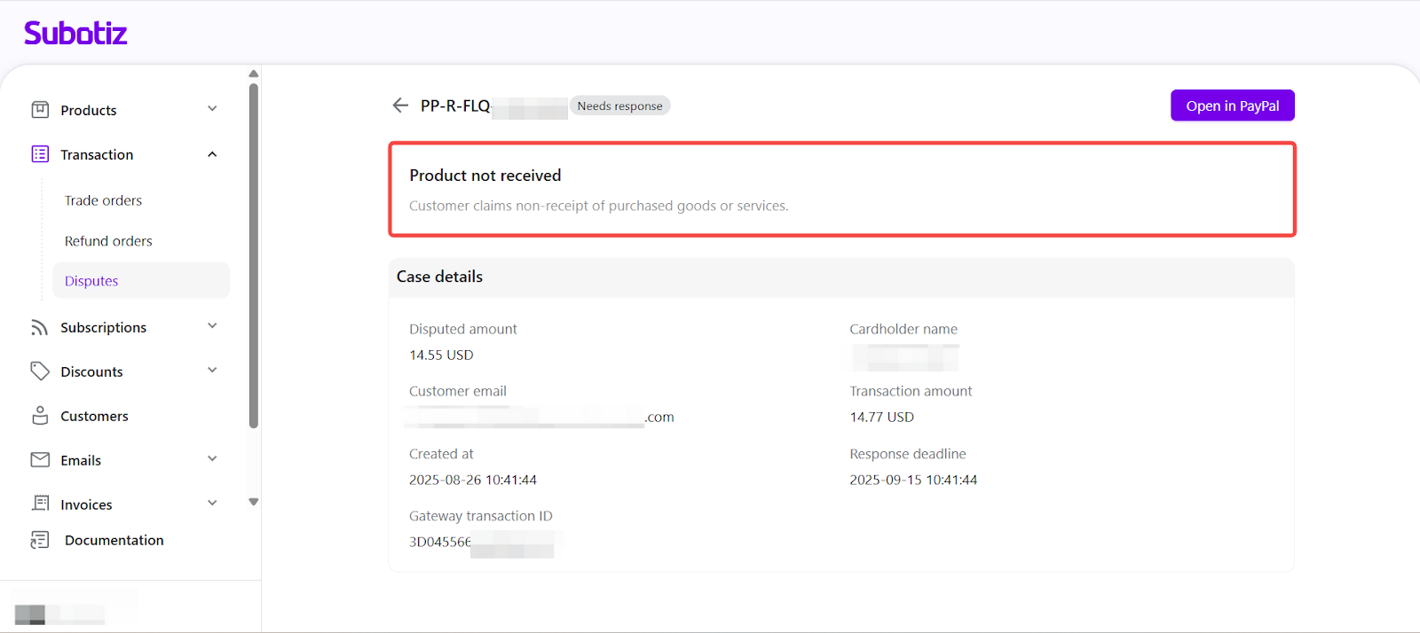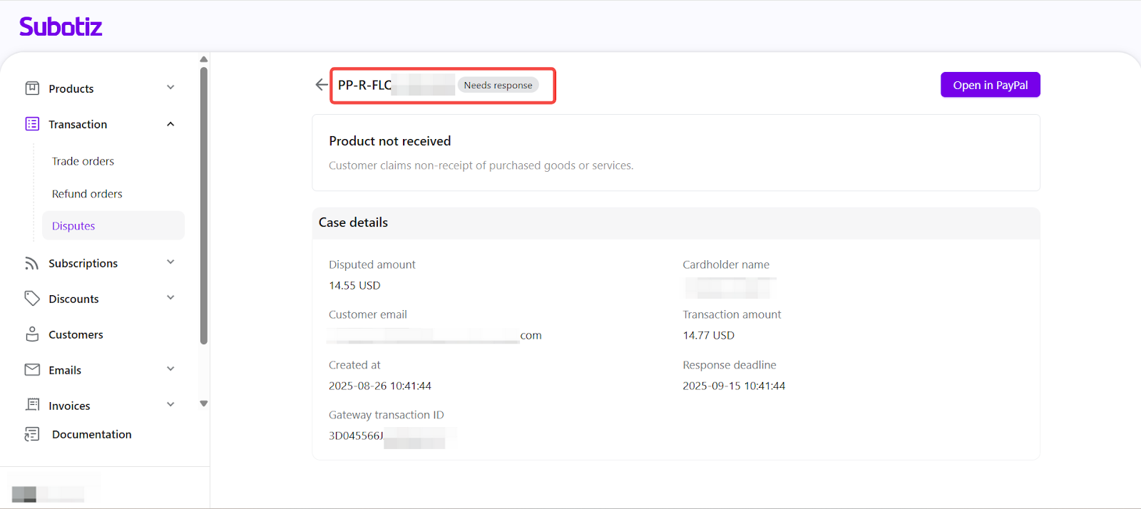 - Early visibility: Review disputes promptly in Subotiz to understand claims and prepare responses before moving to PayPal.