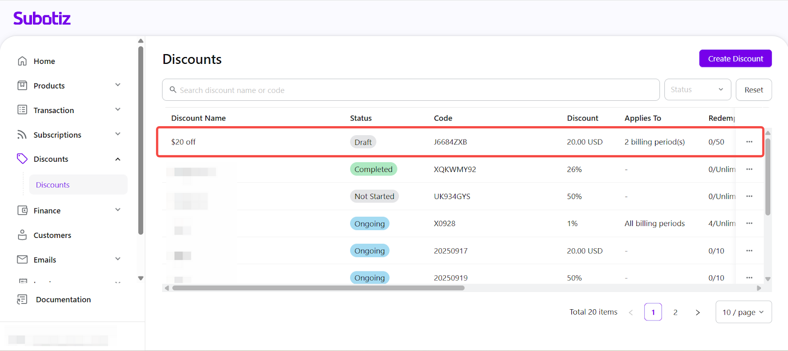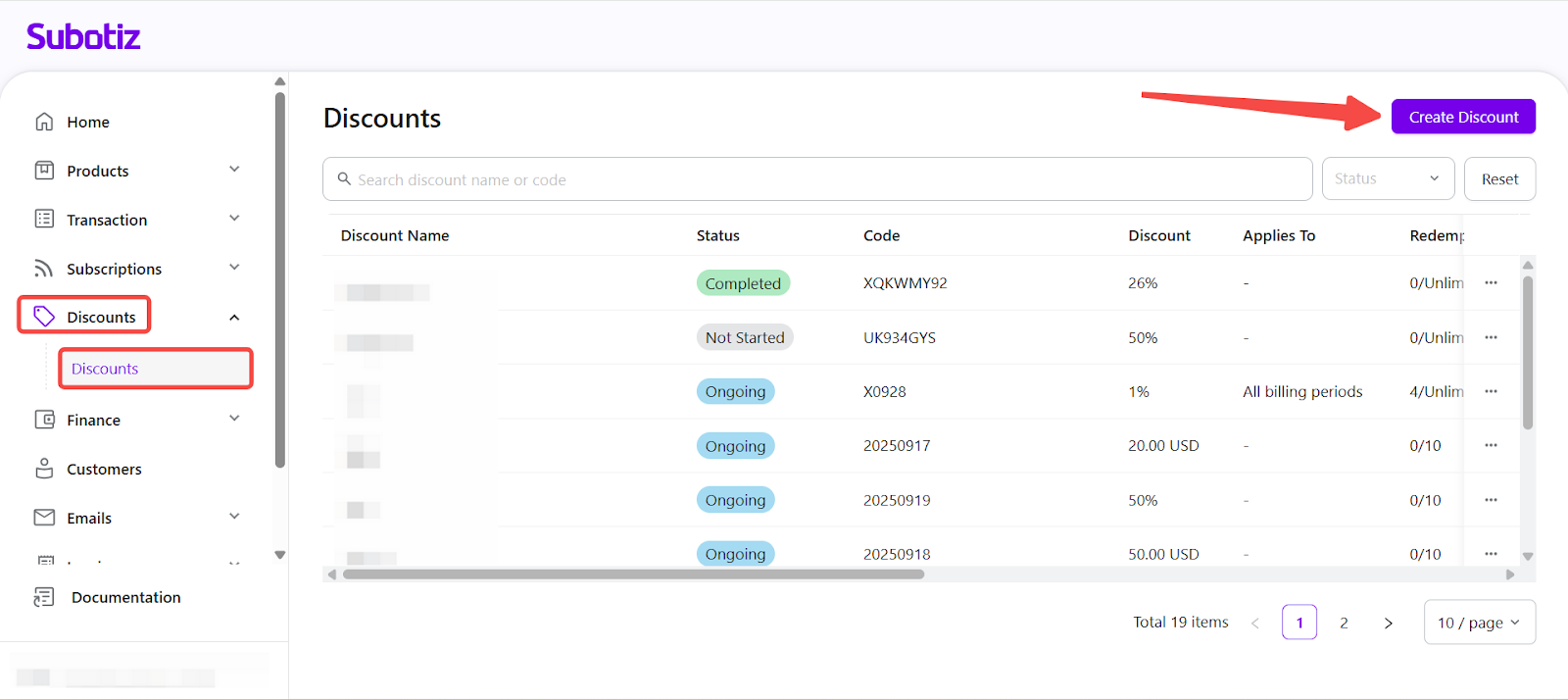 - Start a new discount: In the Subotiz admin, go to Discounts > Discounts and select Create Discount.
