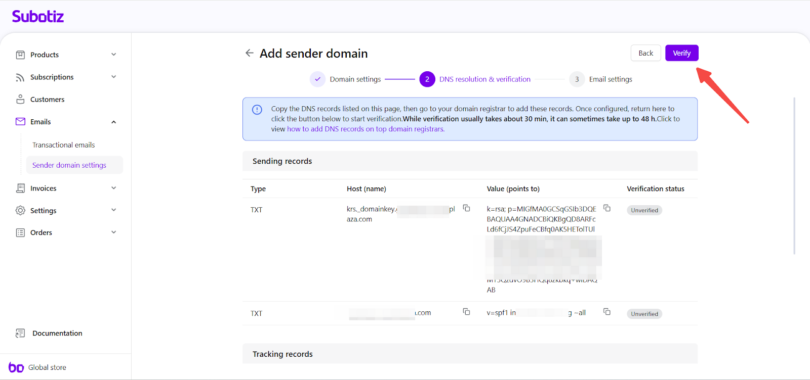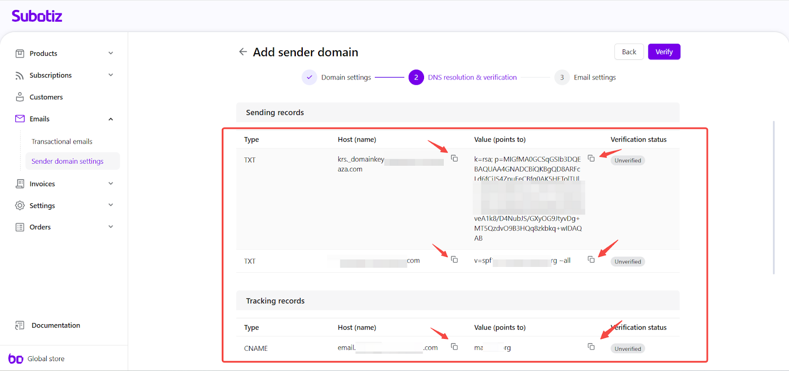 Properly configuring sender domain settings in Subotiz ensures authenticated transactional and marketing emails are delivered reliably to customer inboxes. By verifying DNS records and using a branded subdomain, merchants strengthen brand identity, reduce spam risk, and build greater customer trust.