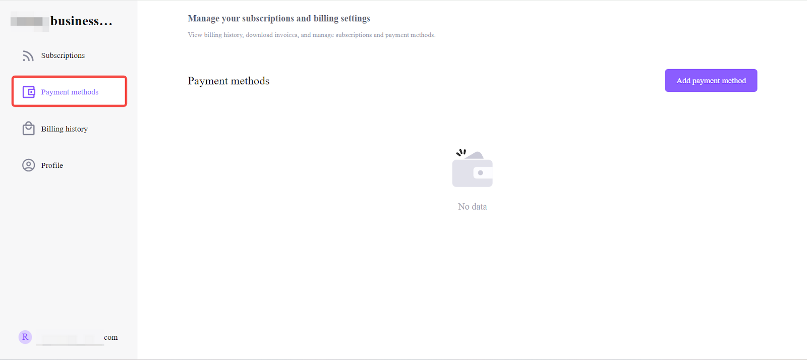 If a renewal attempt fails, customers may return to this section and update their payment method before retrying the charge from Billing history.