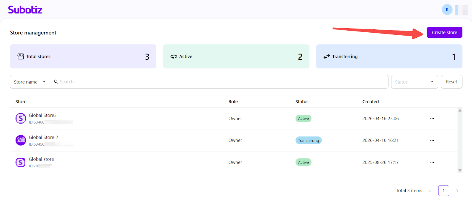 The Create and Manage Stores feature in Subotiz allows merchants to create and manage multiple stores under a single account from a centralized Store Management page. This feature is designed for multi-brand operations and partner-based business models, enabling efficient business expansion and streamlined management of multiple stores.