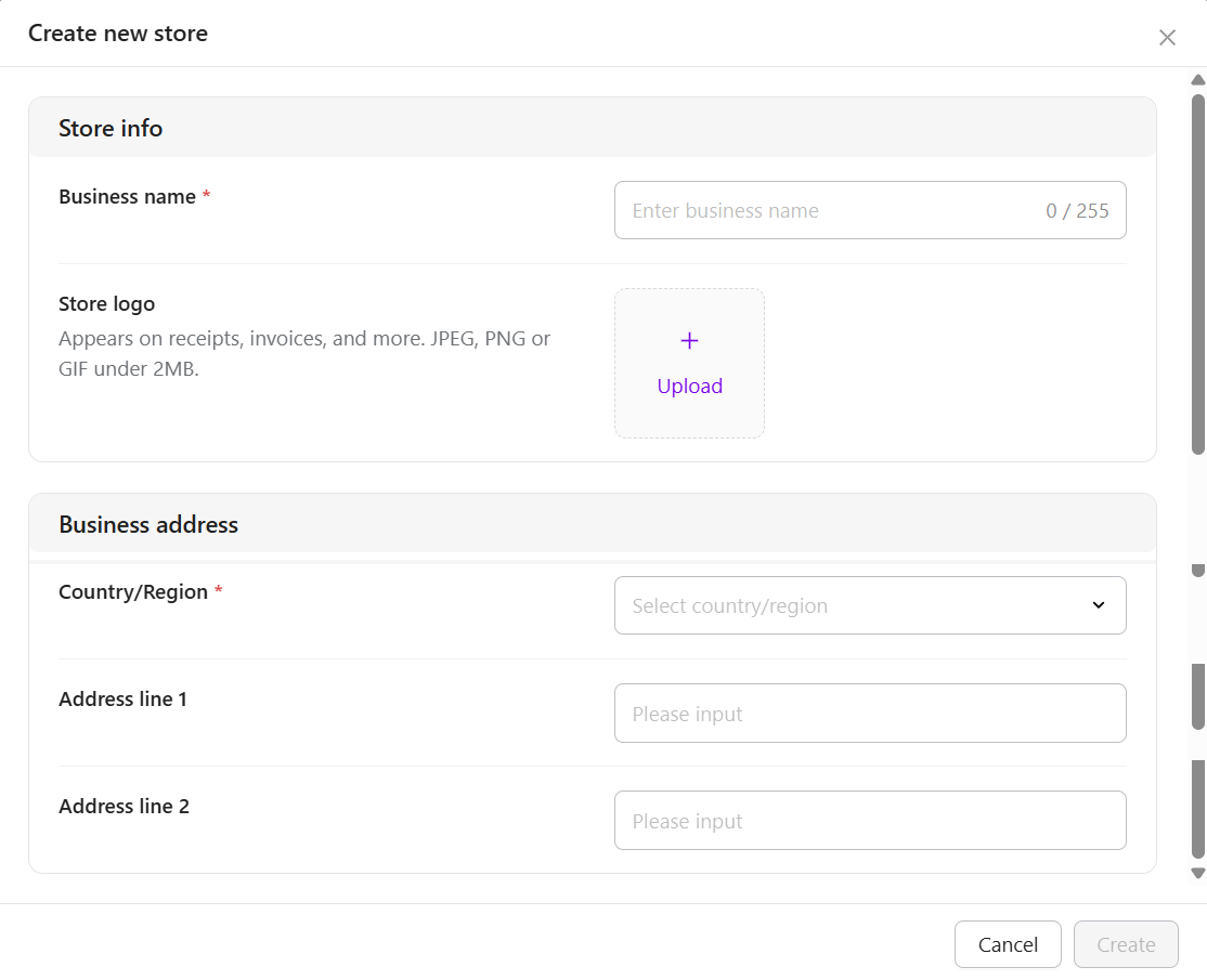 - Store limit: Up to 100 stores can be created per account.