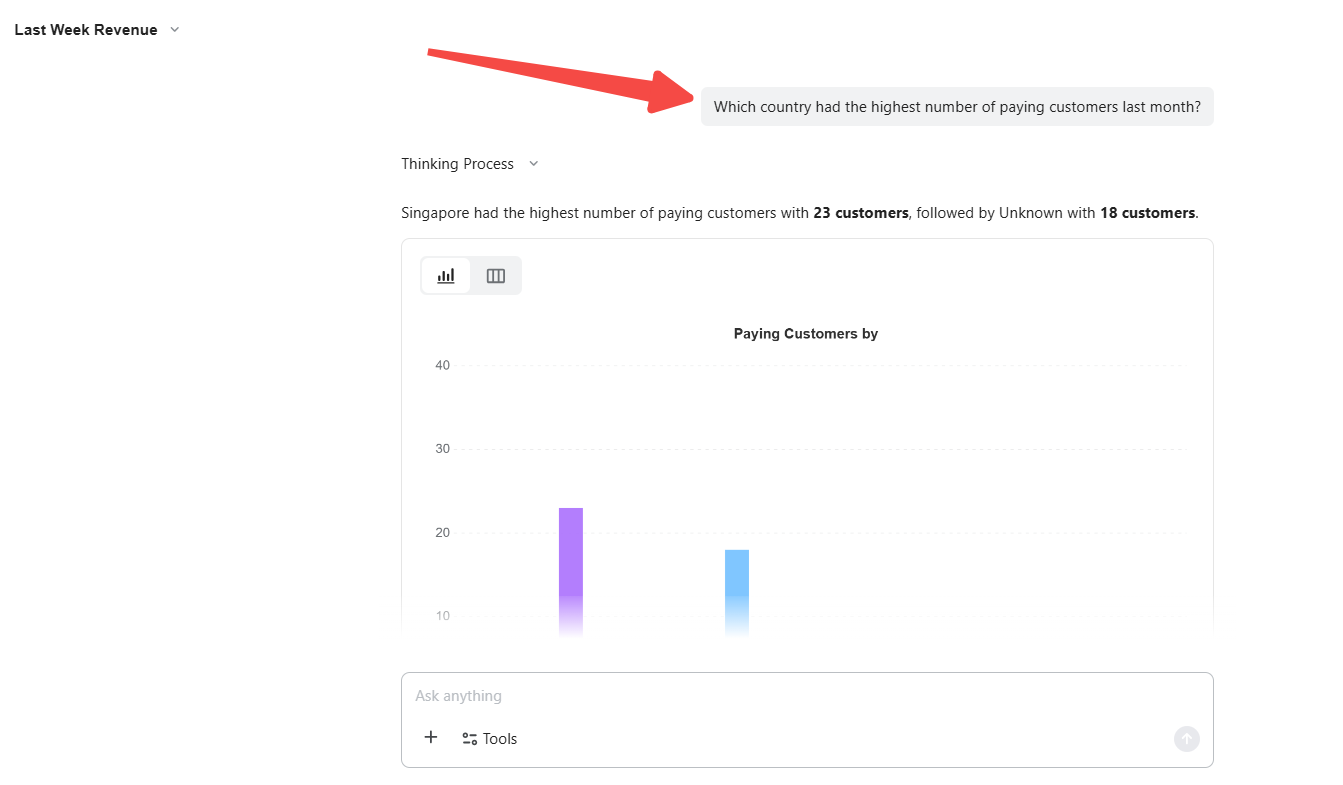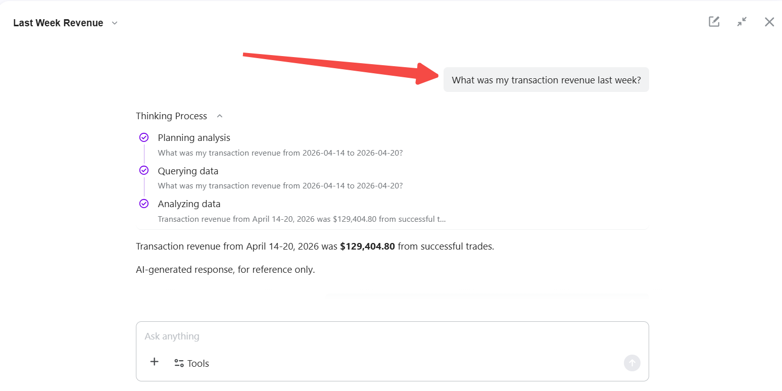 - Refine queries: Ask follow-up questions within the same conversation to continue the analysis.