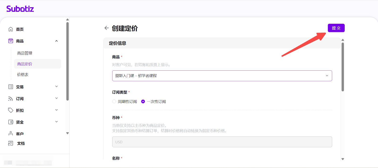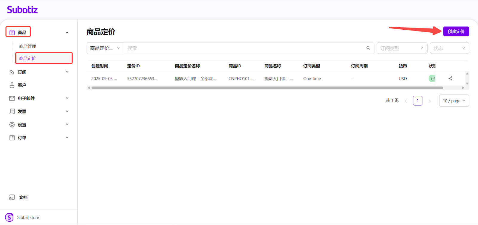 - 进入商品定价: 登录后台,前往 商品 > 商品定价,点击右上角 创建定价。