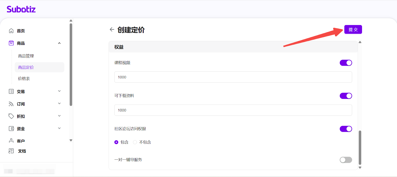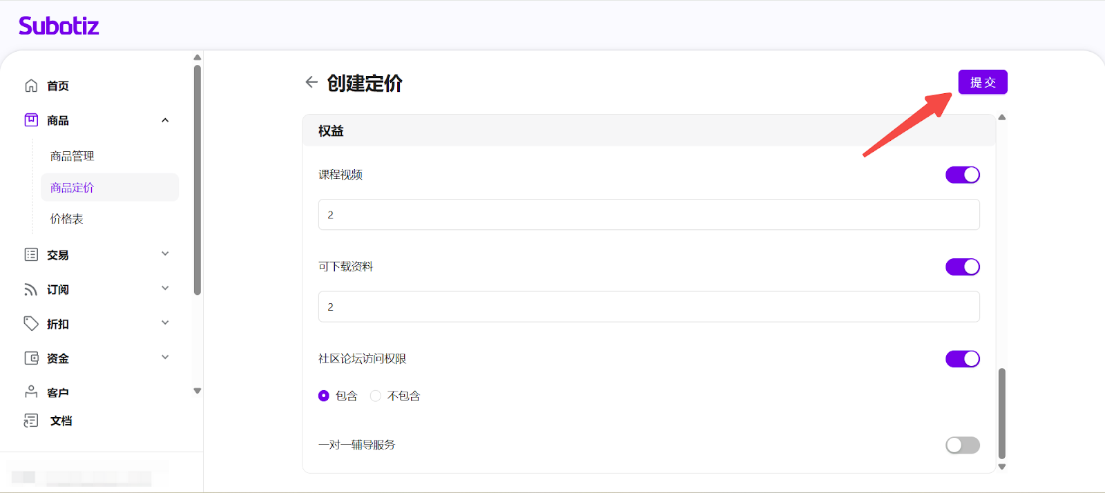 在 Subotiz 中,您可以为同一个商品设置多种定价方案,例如周付、月付或一次性购买,无需重复创建商品。通过灵活配置不同的订阅周期,商家不仅能满足用户多样化的支付偏好,还能提升转化率和续订率,为产品提供更高的定价弹性与运营效率。