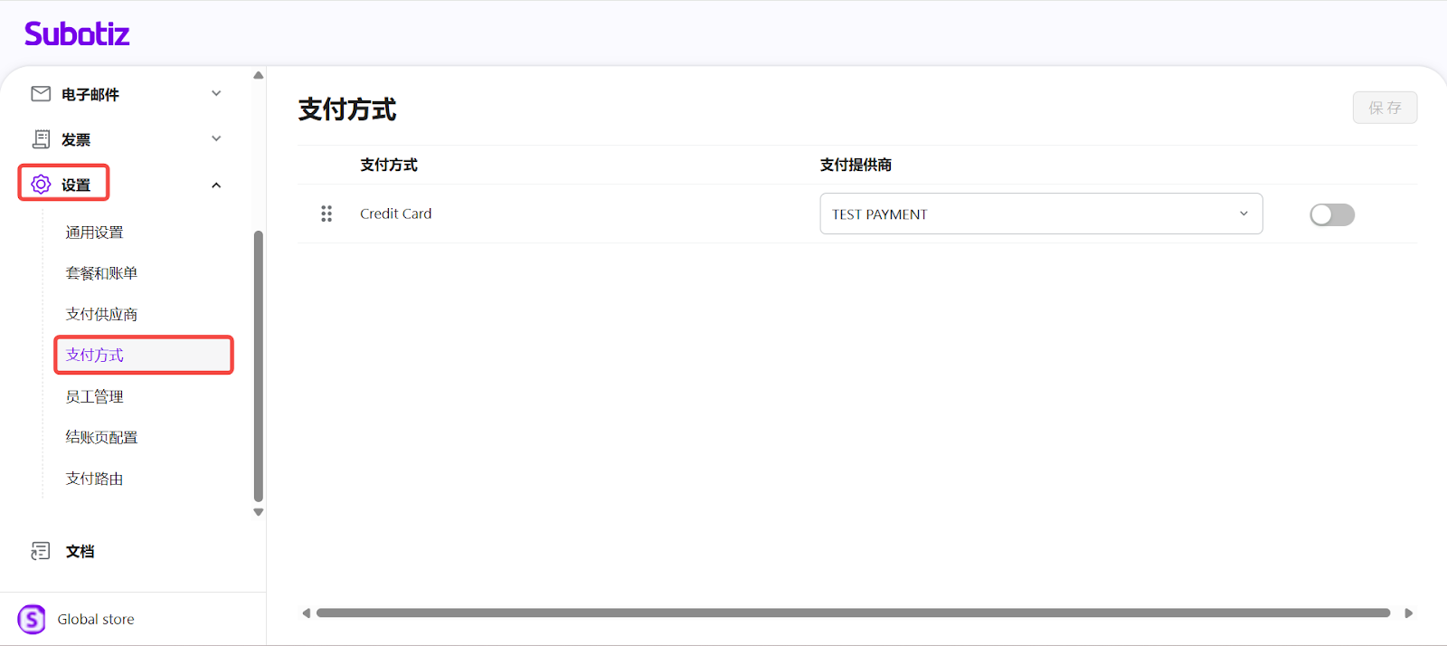 进入设置:前往 设置 > 支付方式,查看所有已配置的支付方式。每一行会显示支付方式名称及其绑定的供应商。