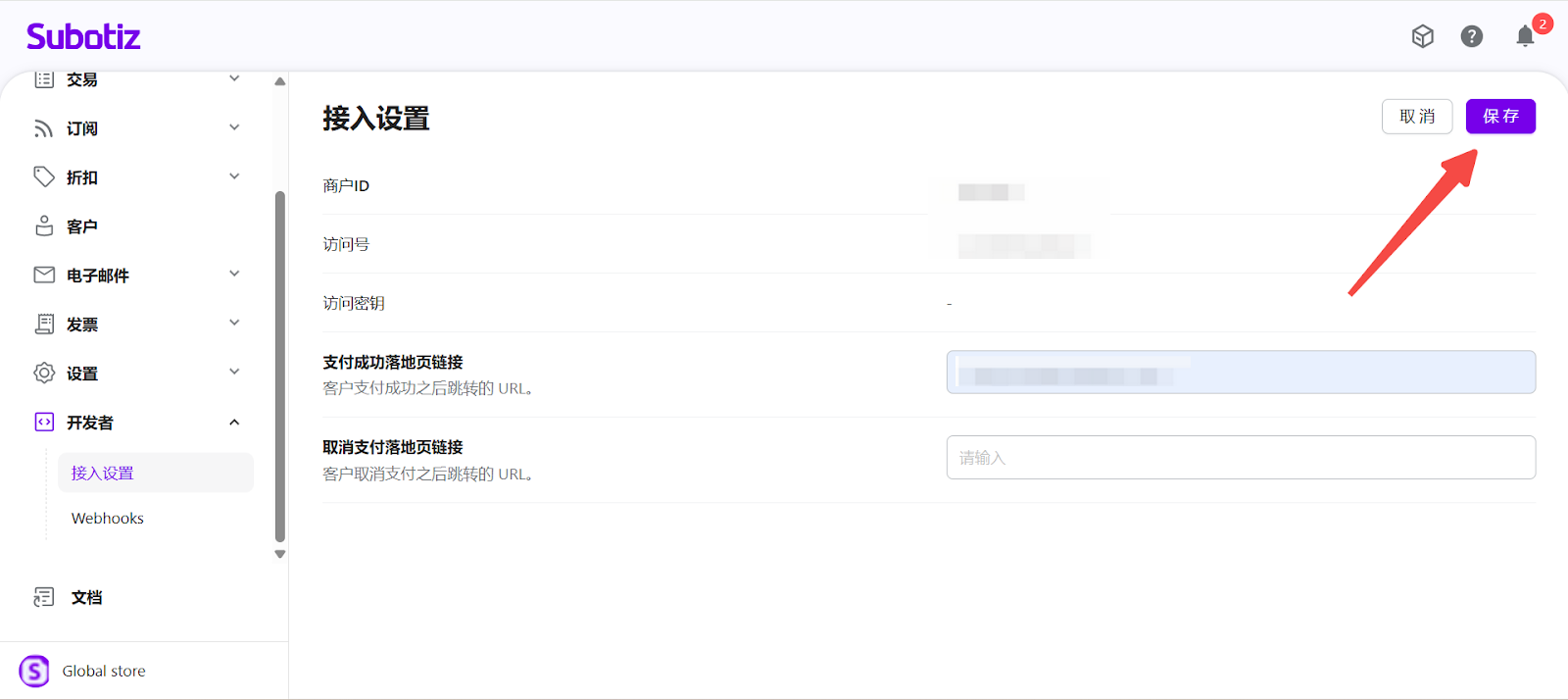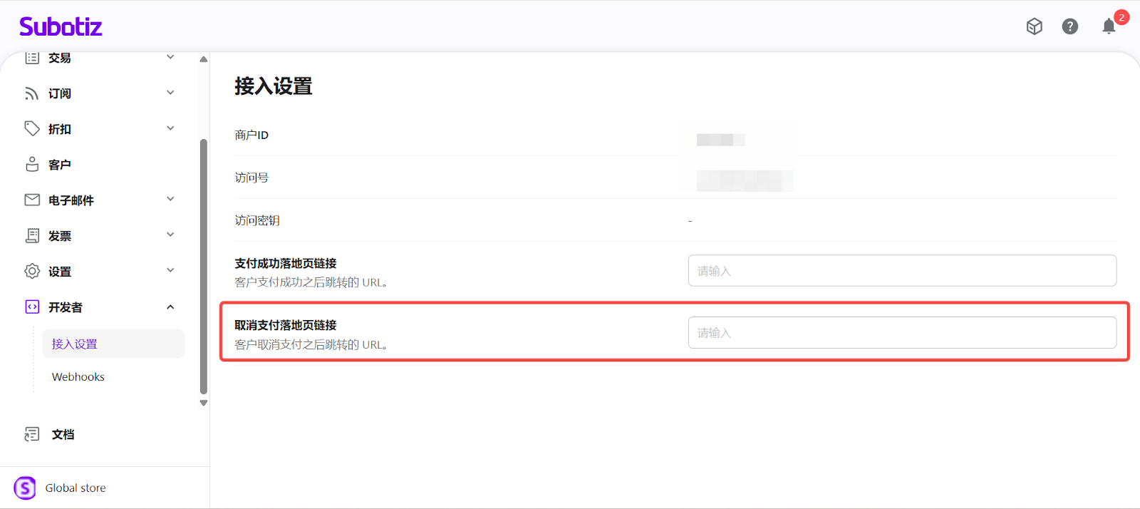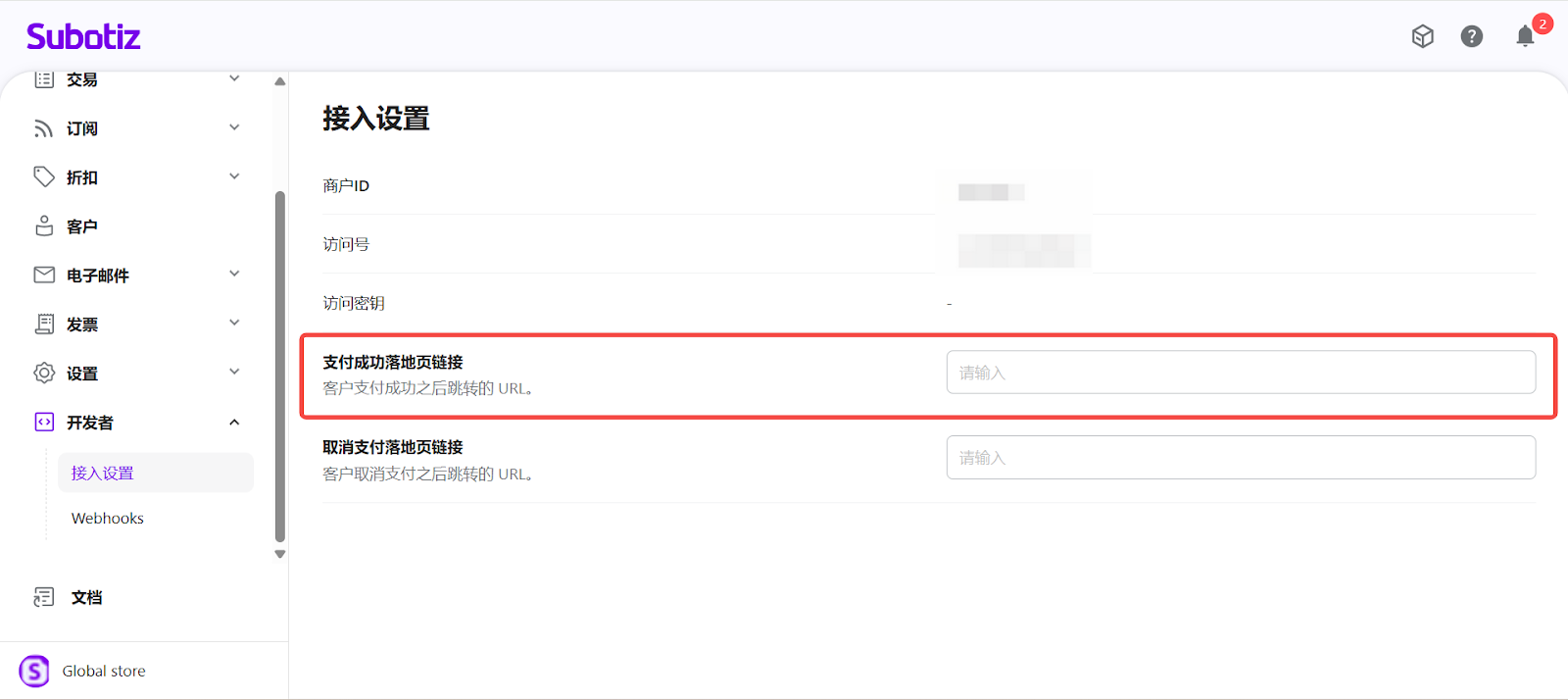 Subotiz 的 开发者链接 用于配置 支付链接 场景下的客户页面 跳转规则。通过合理设置支付成功与取消后的跳转页面,商户可为客户提供清晰、顺畅的结账体验。
