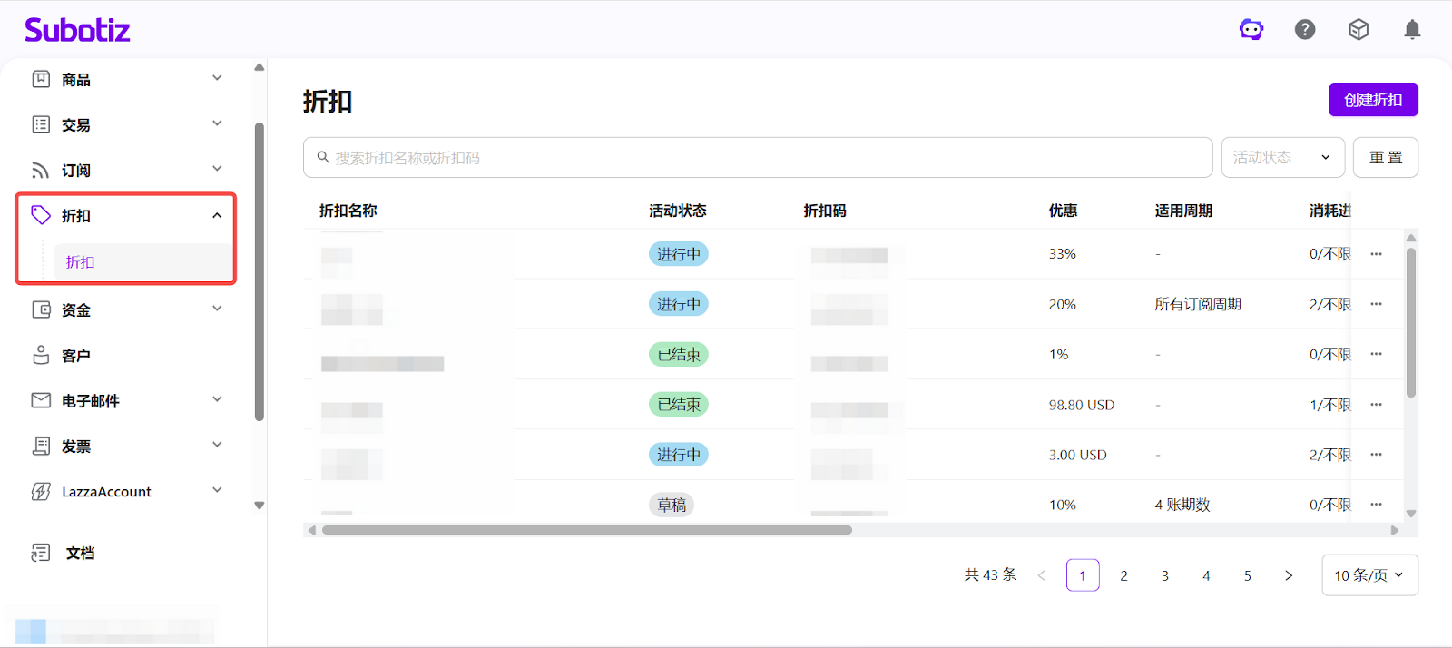 折扣模块用于创建与管理结账时可使用的优惠规则,支持百分比折扣与固定金额折扣,可应用于不同商品与定价方案。