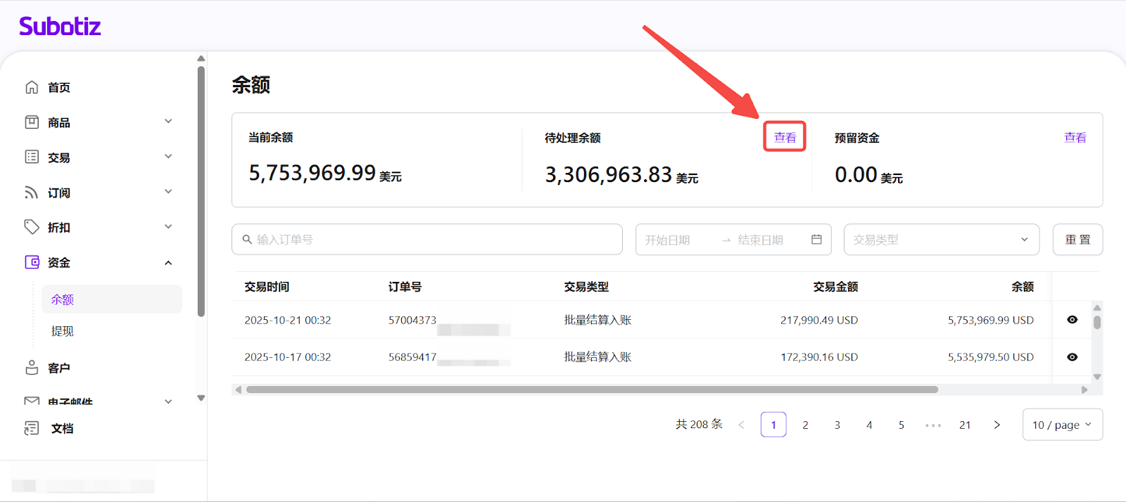 余额|查看待处理余额金额明细