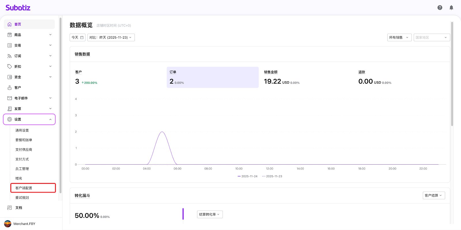 - 登录Subotiz管理后台。点击‘设置 ’> ‘结账页配置’ > ‘结账页’以访问配置页面。