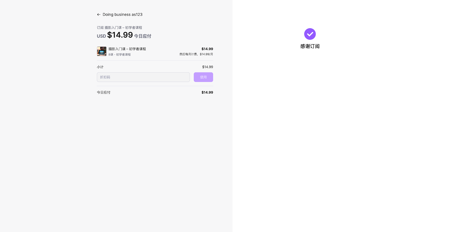 当结账流程完成时,Subotiz会自动为需要定期付款的商品创建订阅合同。