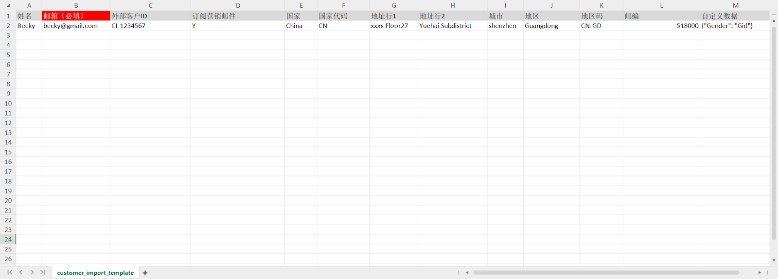 - 在使用 外部客户ID 的情况下,邮箱 字段可不填写