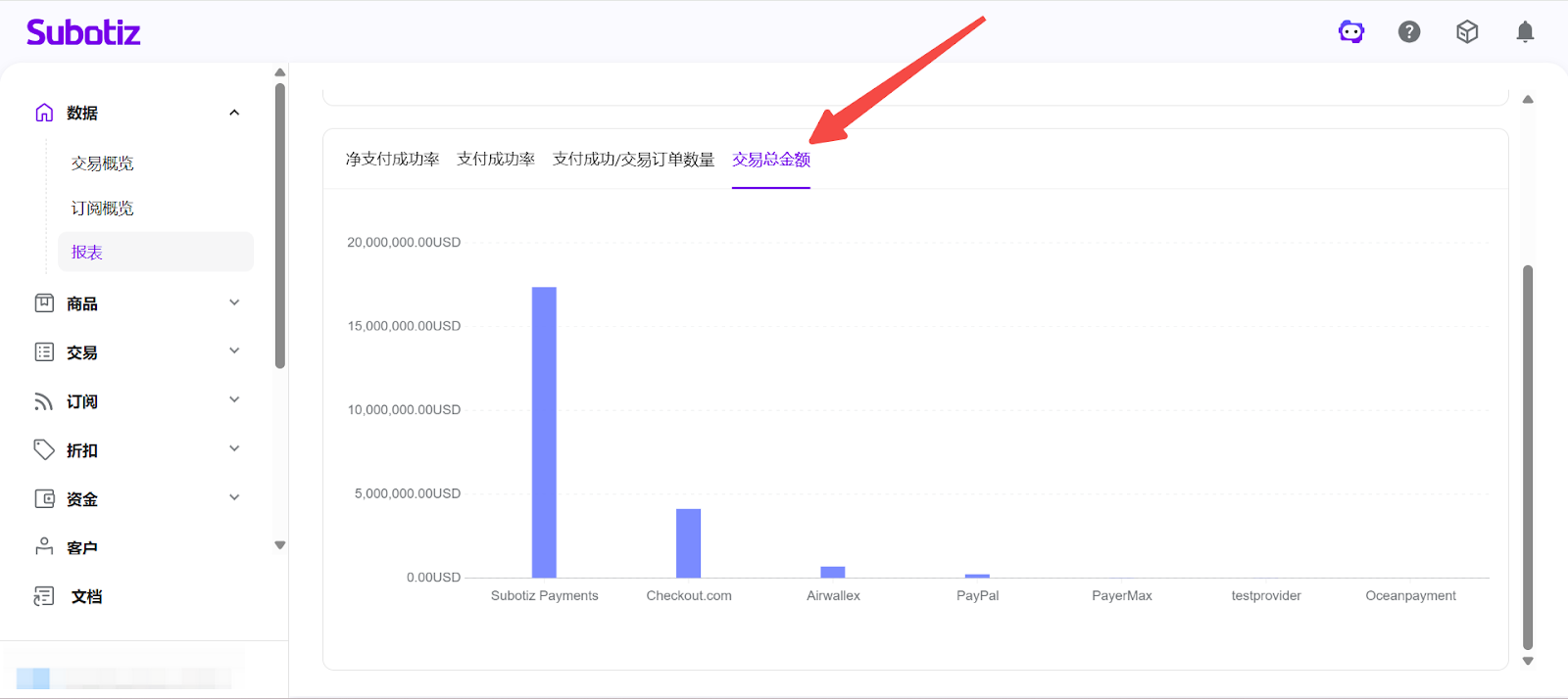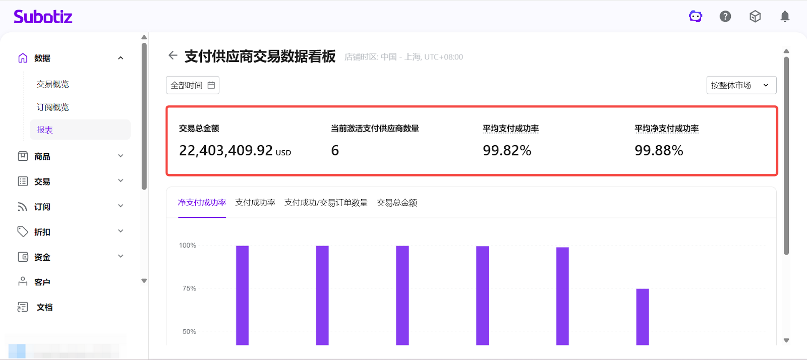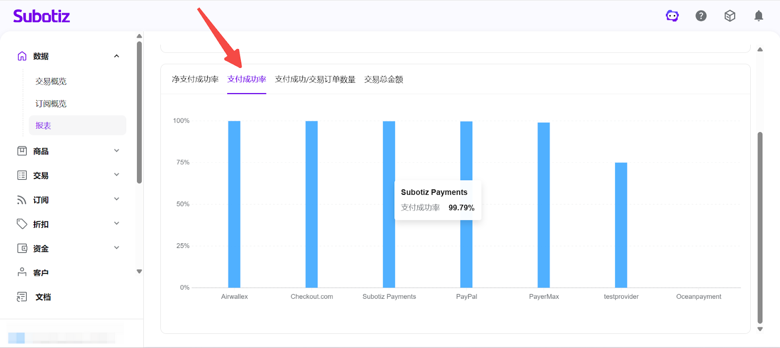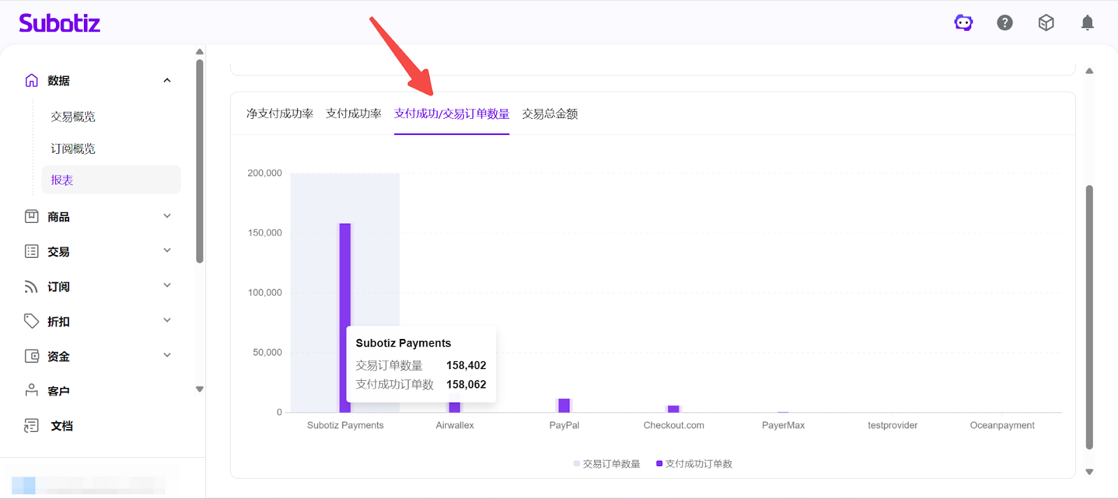 - 打开报表模块:在 Subotiz 后台点击 数据 > 报表。