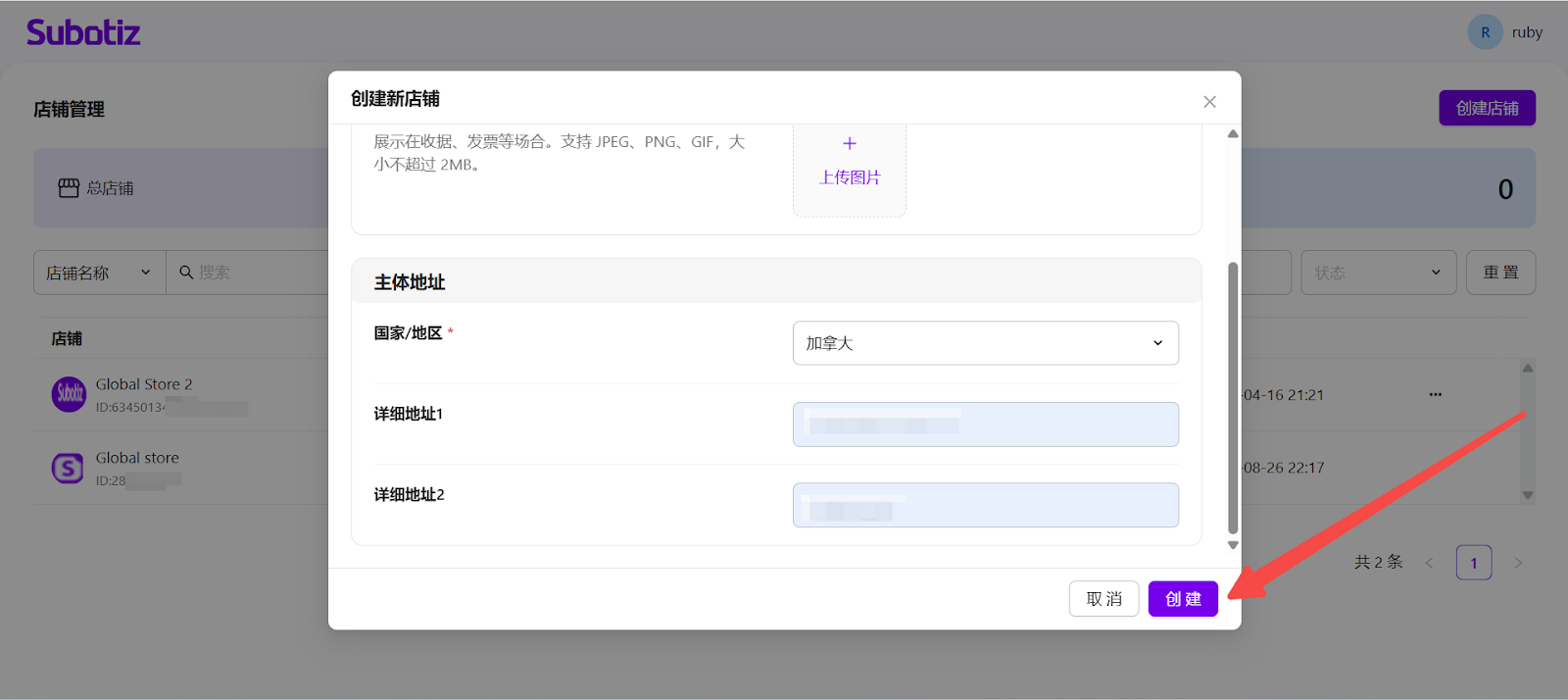 - 提交创建:点击 创建,系统将自动生成店铺。
